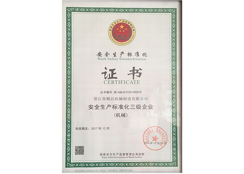 安全生產(chǎn)標(biāo)準(zhǔn)化三級企業(yè)